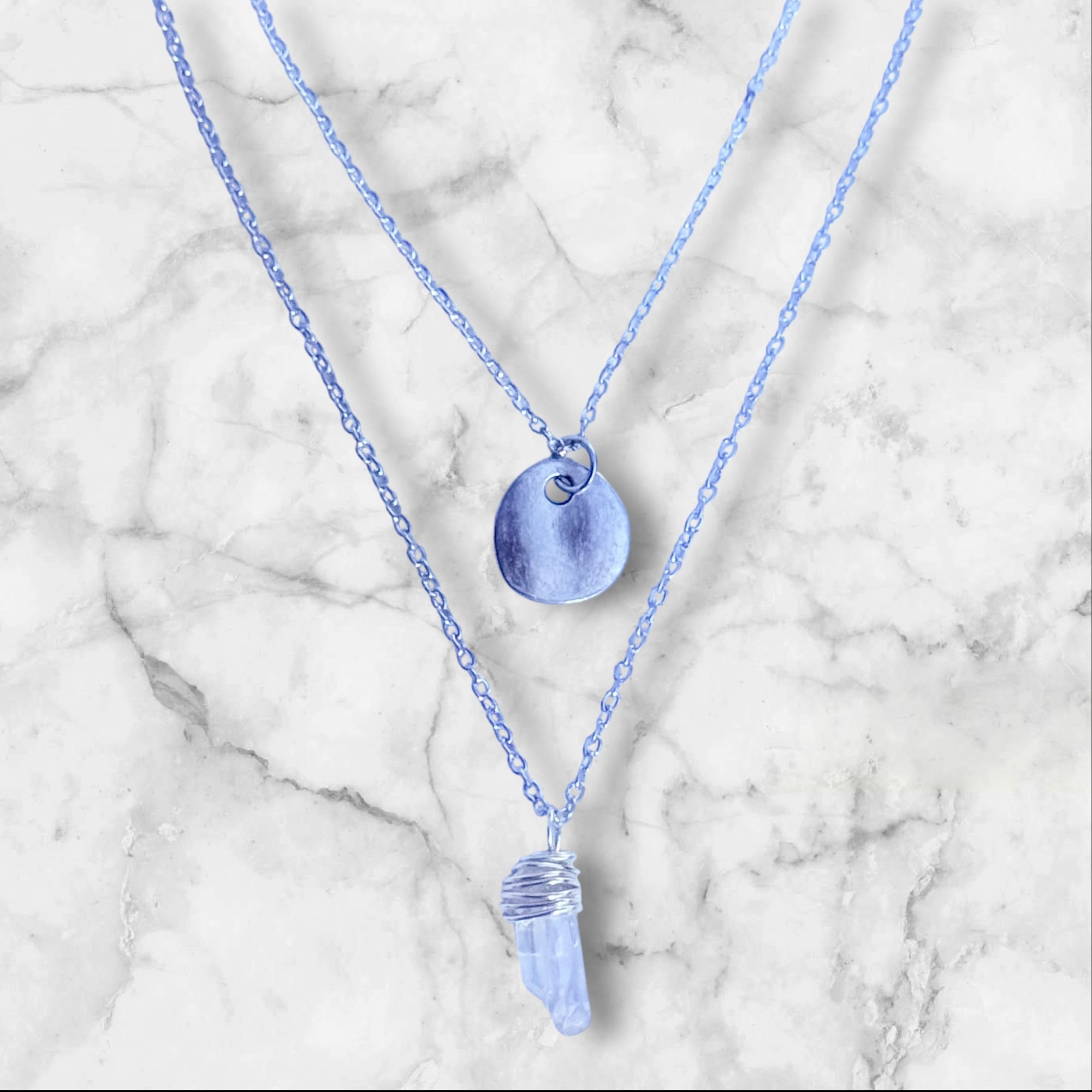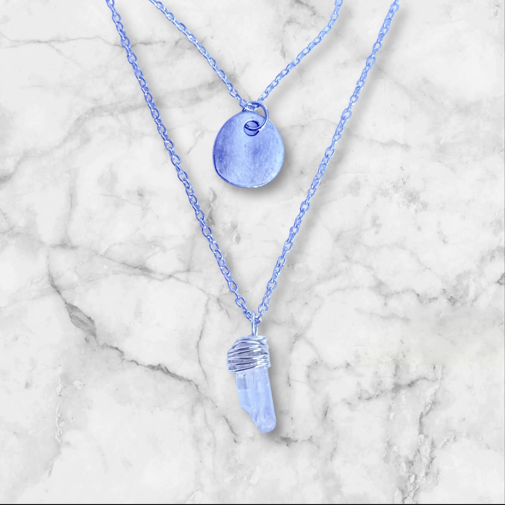 Wire Wrapped Crystal Pendant Layered Necklace