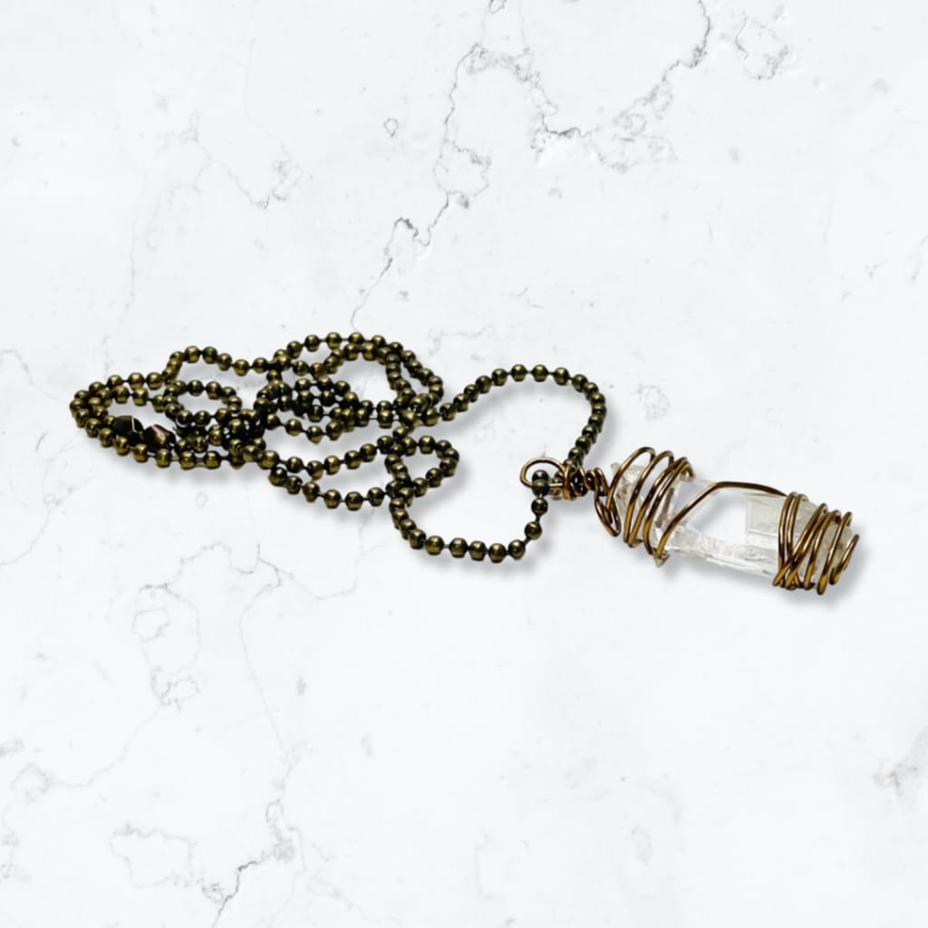 Brass Wire Wrapped Clear Crystal Hexagon Pendant