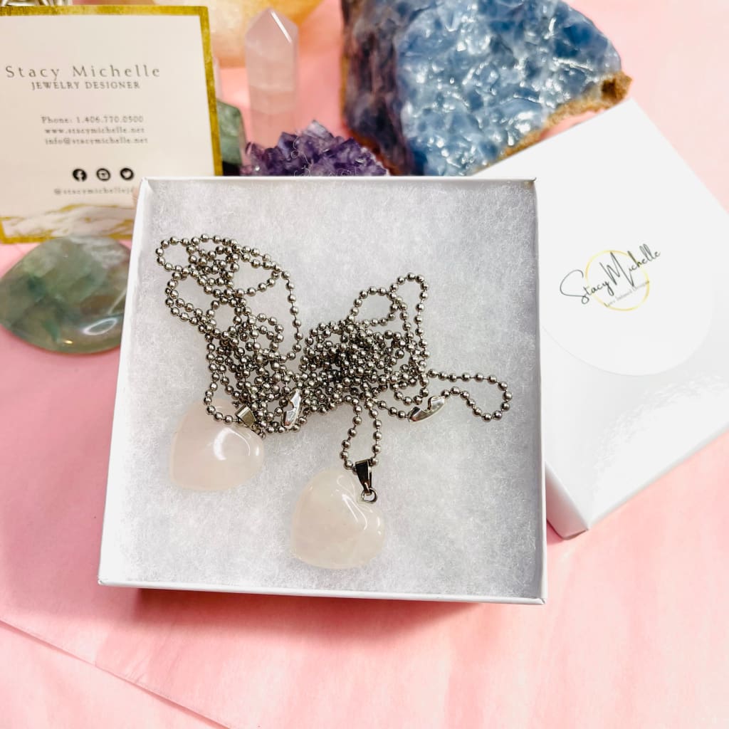 Rose Quartz Crystal Heart Pendant Necklace
