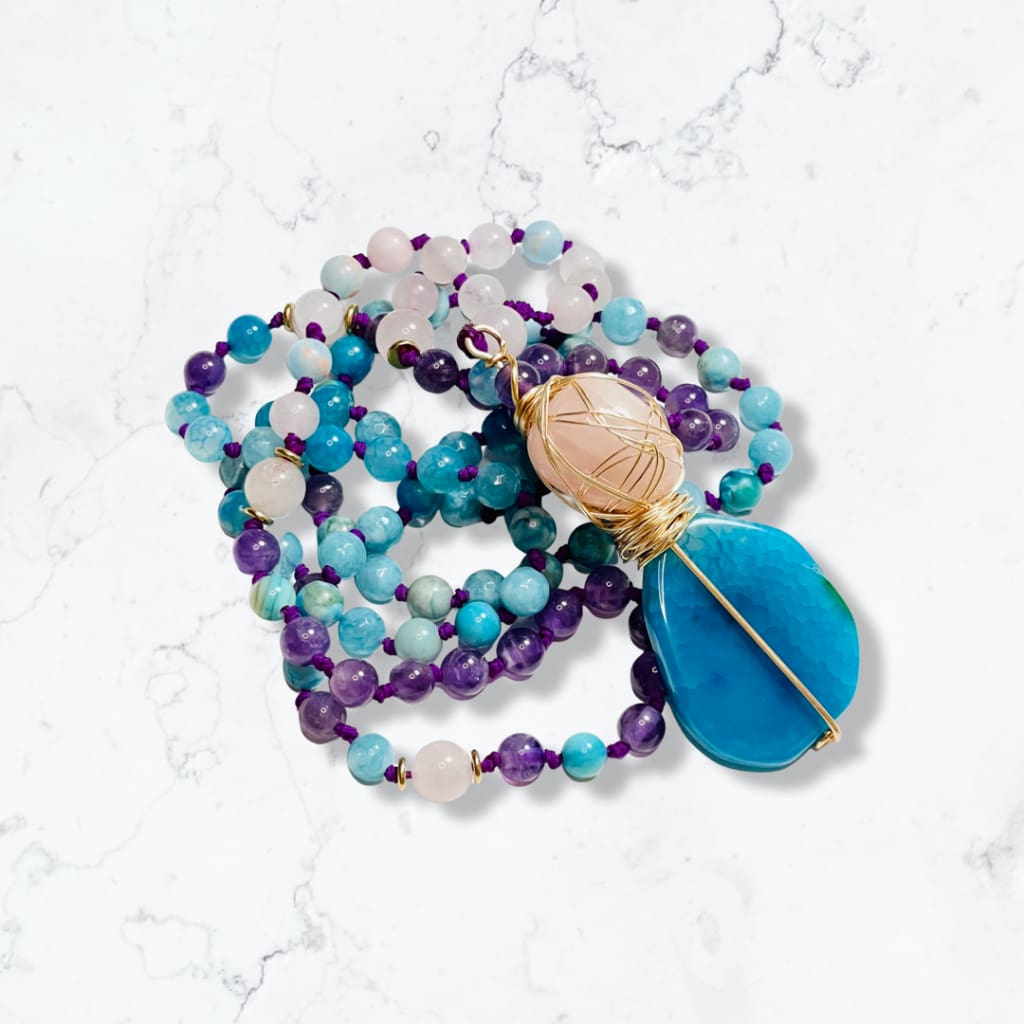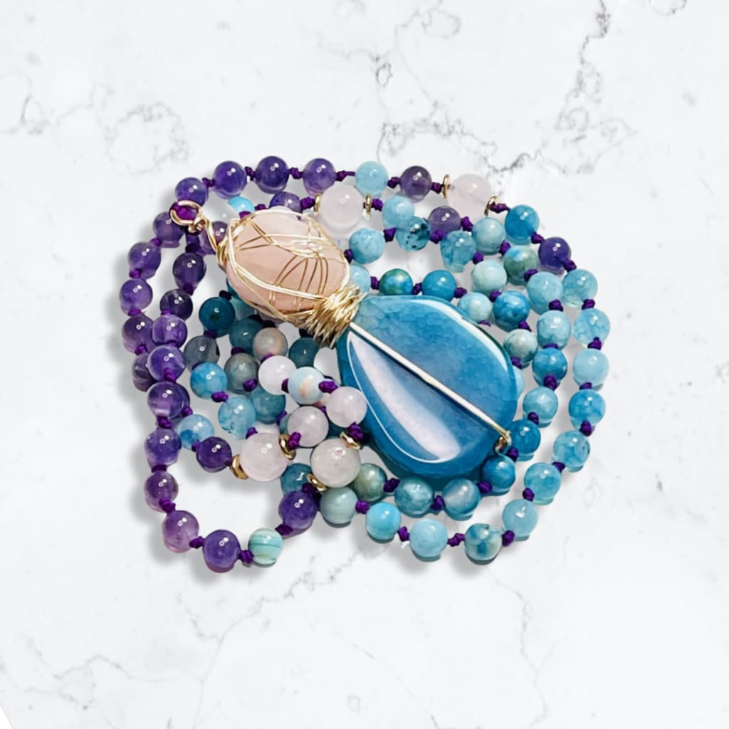 - Wire Wrapped Rose Quartz and Blue Agate Pendant